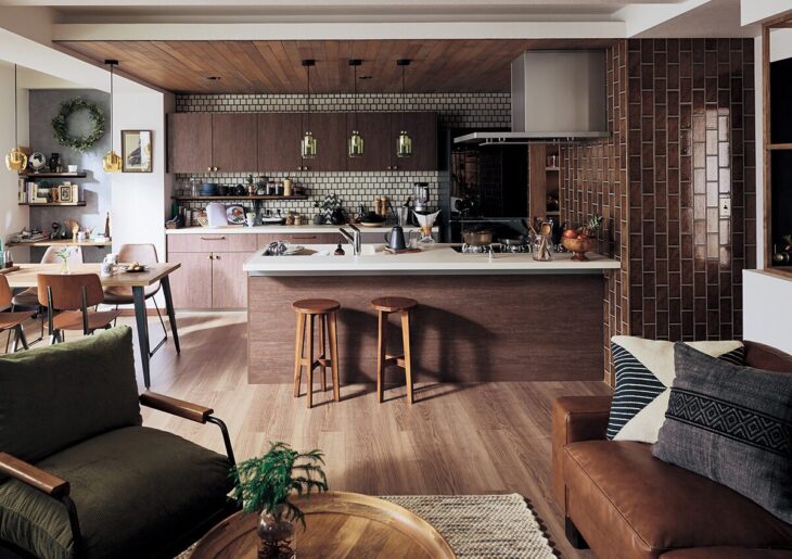 また、壁付けキッチンは壁自体に壁材(木質内装材や石材など)でおしゃれにコーディネートすることもできるので、壁付けキッチンでもコーディネート次第ではおしゃれに魅せることもできます。