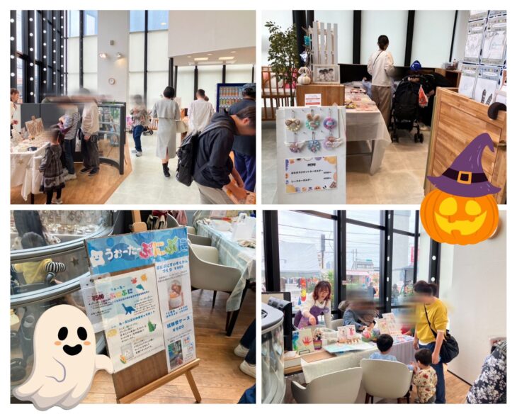 天気が悪くて急遽、屋内での開催となり、準備がバタバタしましたが、出展者様のご協力で