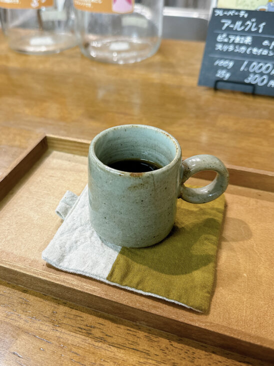 小さなかわいらしいカップに淹れたてのコーヒーを注いでいただき、カウンターでゆっくり試飲させていただきます。試飲の域を超えています。
