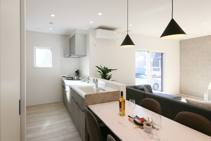 キッチンは少し奥まった形ですが、南側の陽光を取り入れることが出来るためとても明るい空間になっています☀️