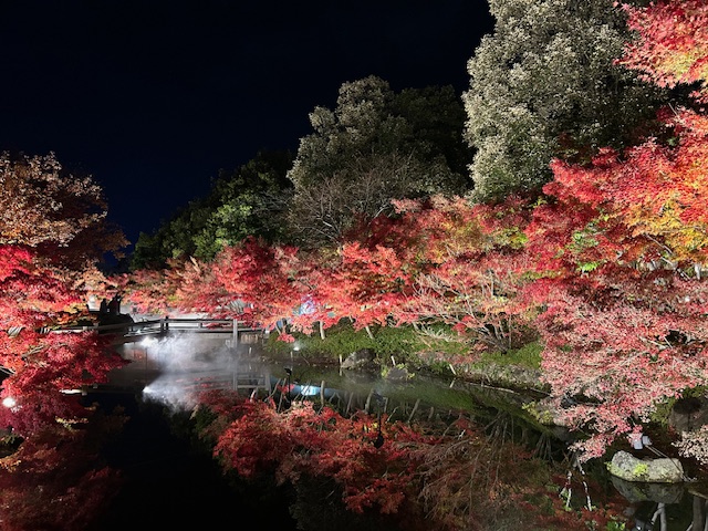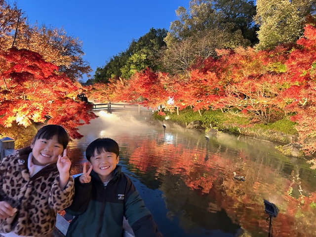 まだまだ紅葉も残り、ライトアップされた花々はとてもきれいでした😊