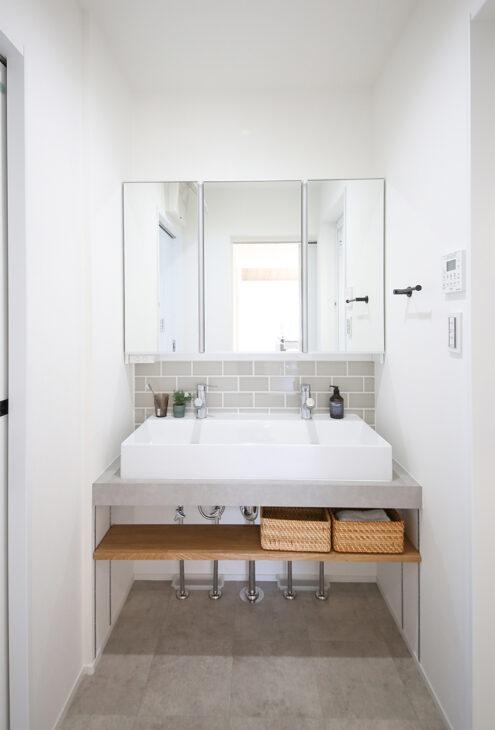 こちらは洗面台自体は造作ではなく、パナソニックCラインの既製品。