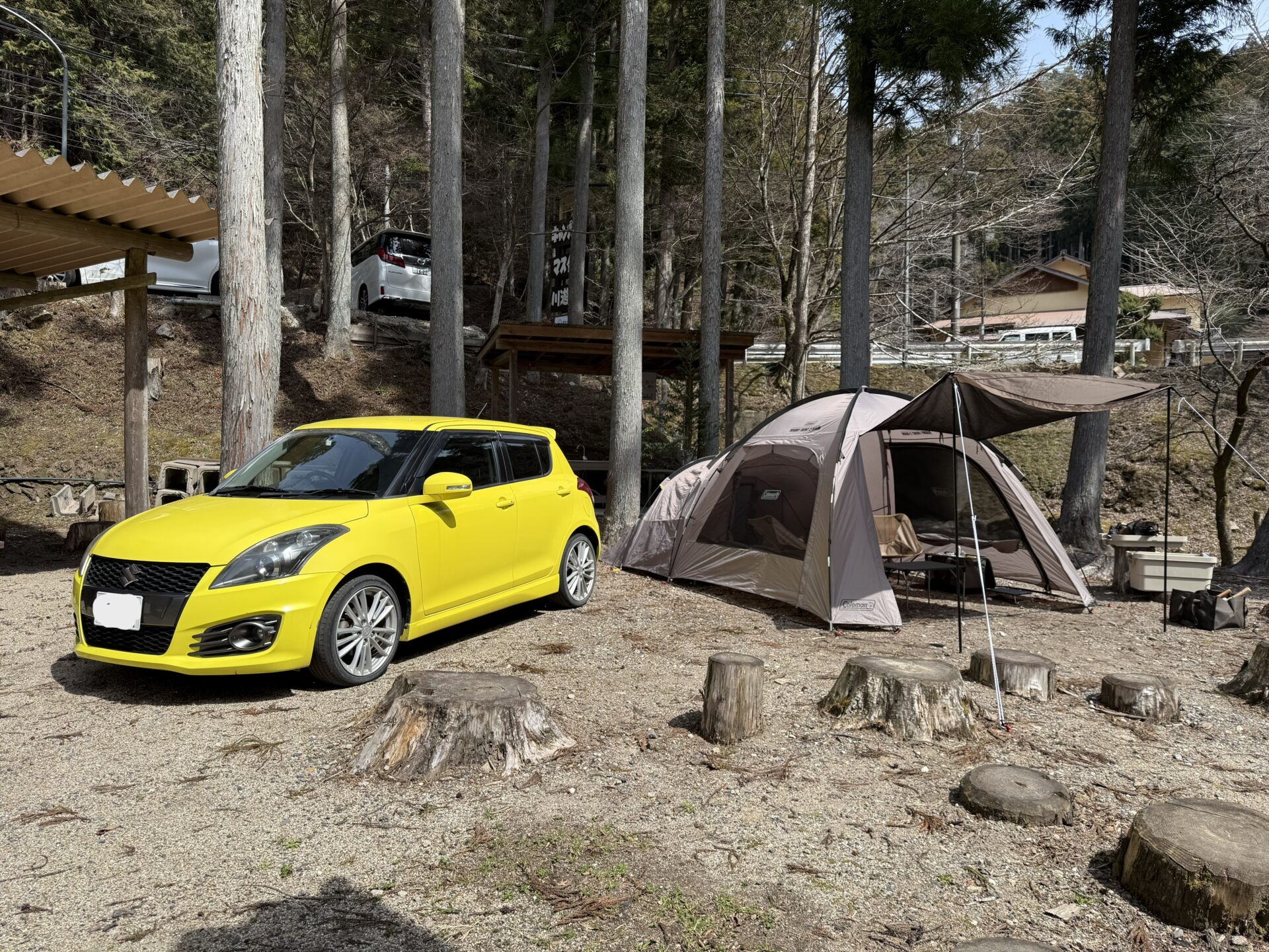 先日車を買い替えて、今はキャンプに馴染む色の車になりました(笑)