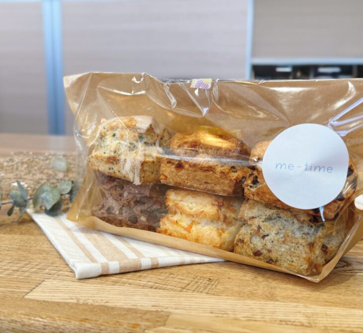 me-timeさんでは不定期で、カットした生地の切れ端を利用した「はしっこスコーン」の販売もされています。